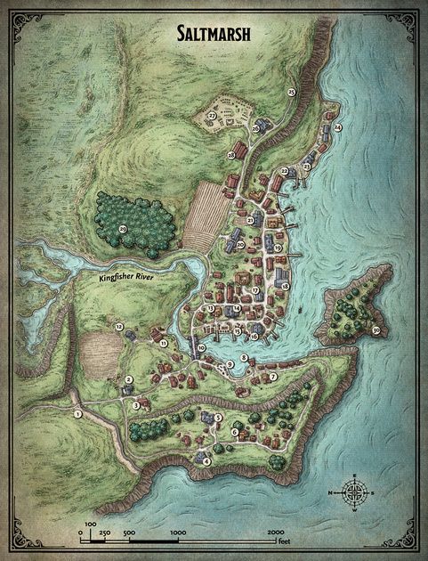 Locations numbered below will be defined as the town is explored.